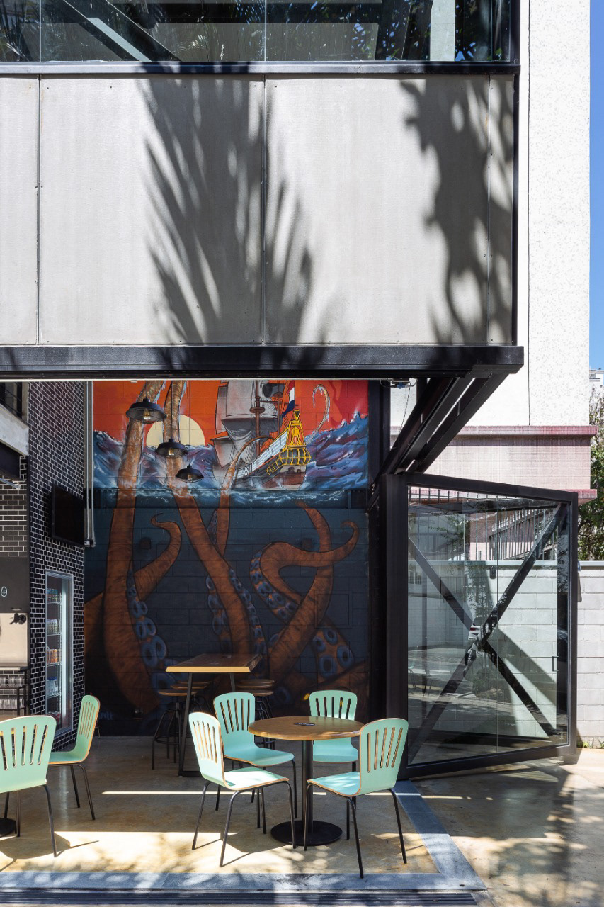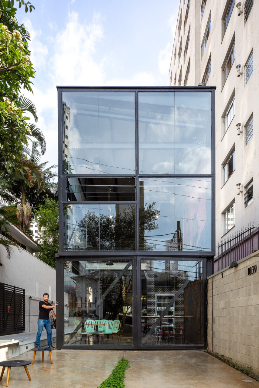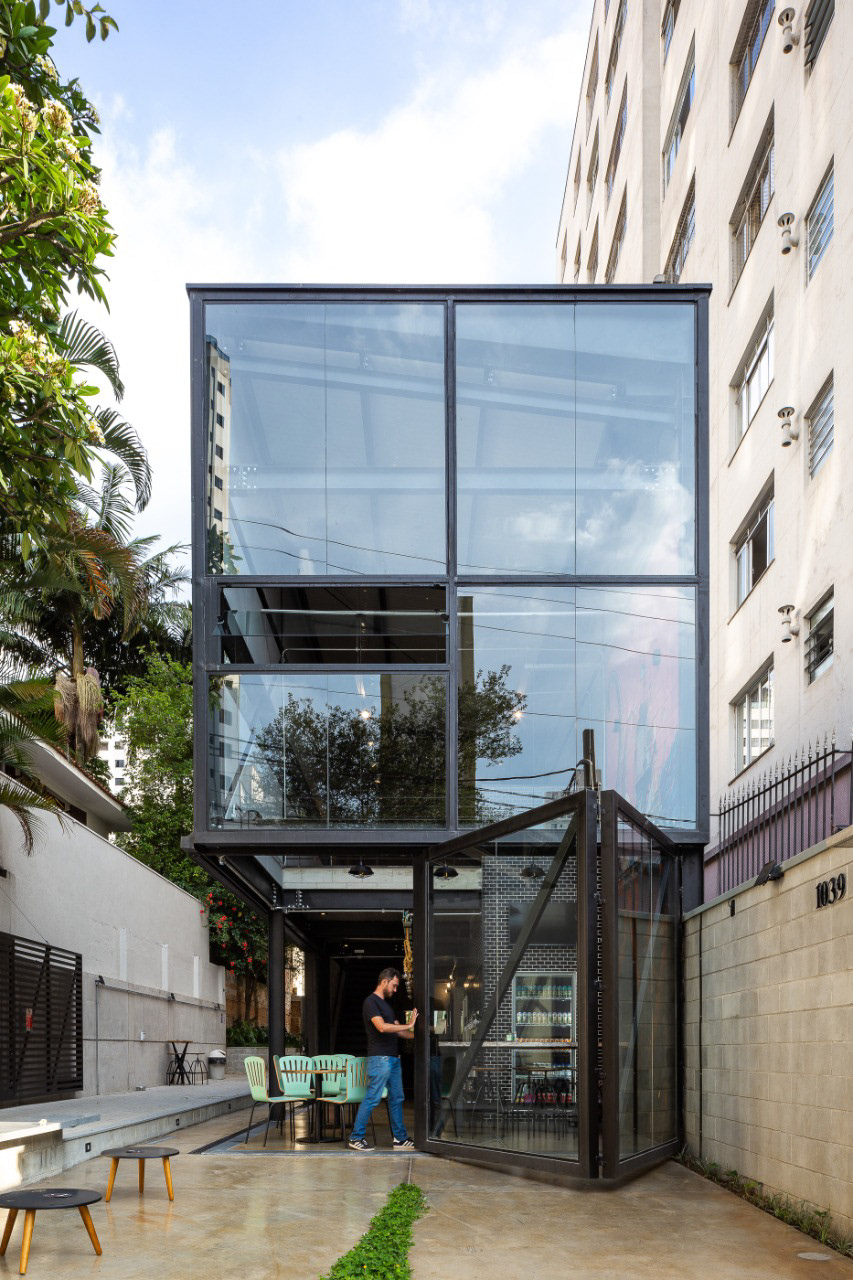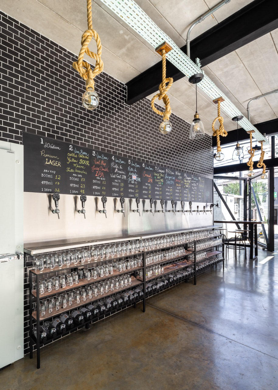 A cervejaria Van Been possui um projeto que integra o espaço interno e externo, com estrutura metálica para criar um ambiente aberto e acolhedor. As esquadrias de vidro reforçam essa ideia, permitindo ampla abertura entre o interior e as áreas externas.